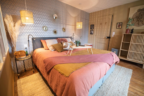 Bienvenue dans La Cour de Philomène, un appartement pour 2 personnes, aux couleurs et à la décoration art-déco, situé au premier étage de la maison.